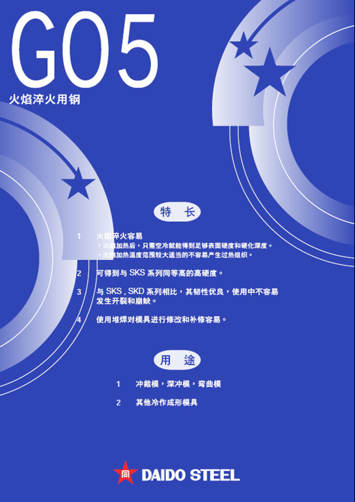 日本大同G05冷作模具鋼:火焰淬火模具鋼