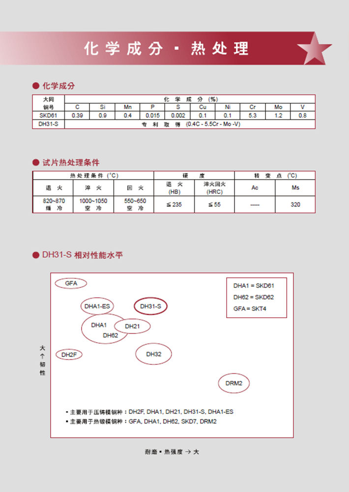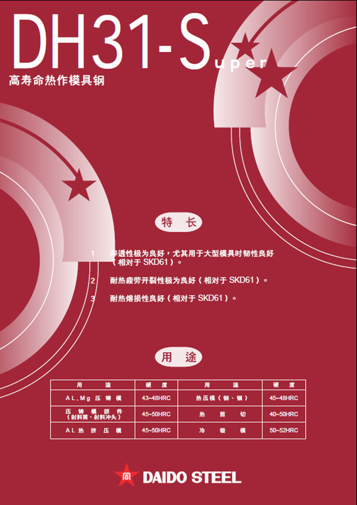 日本大同DH31-S熱作模具鋼:高韌性*高溫強度改良鋼