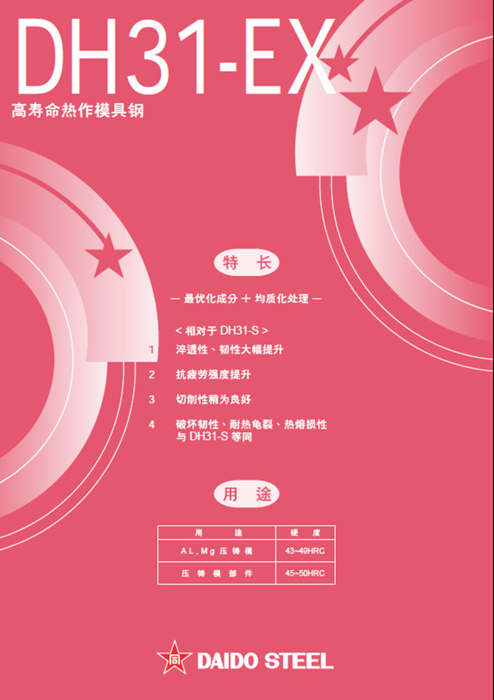 日本大同DH31-EX熱作模具鋼:高韌性*高溫強度*淬透性改良鋼