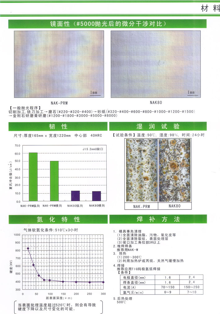 日本大同NAK-PRM塑料模具鋼:NAK80改良40HRC級高鏡面模具鋼