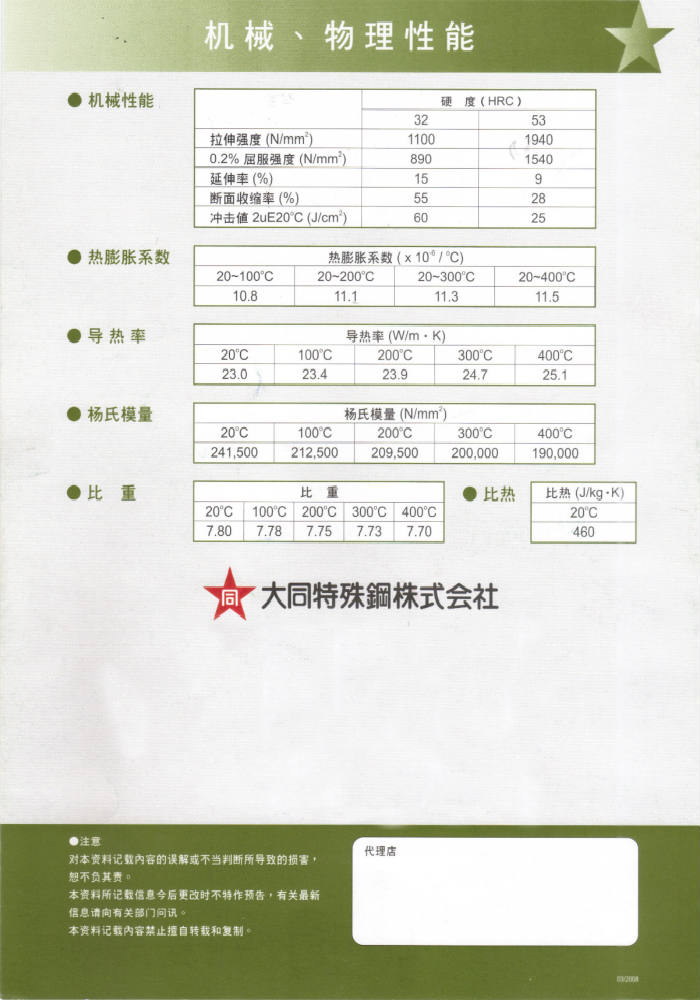 日本大同D-STAR塑料模具鋼:超高鏡面性淬火回火模具鋼(三次熔煉材料)