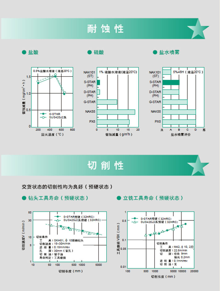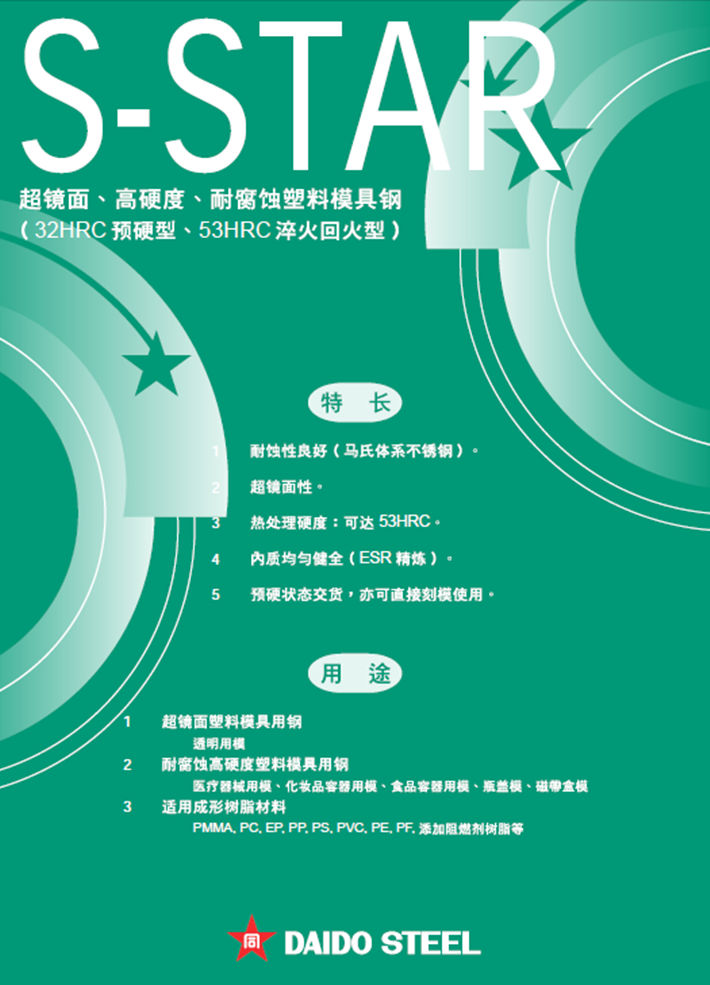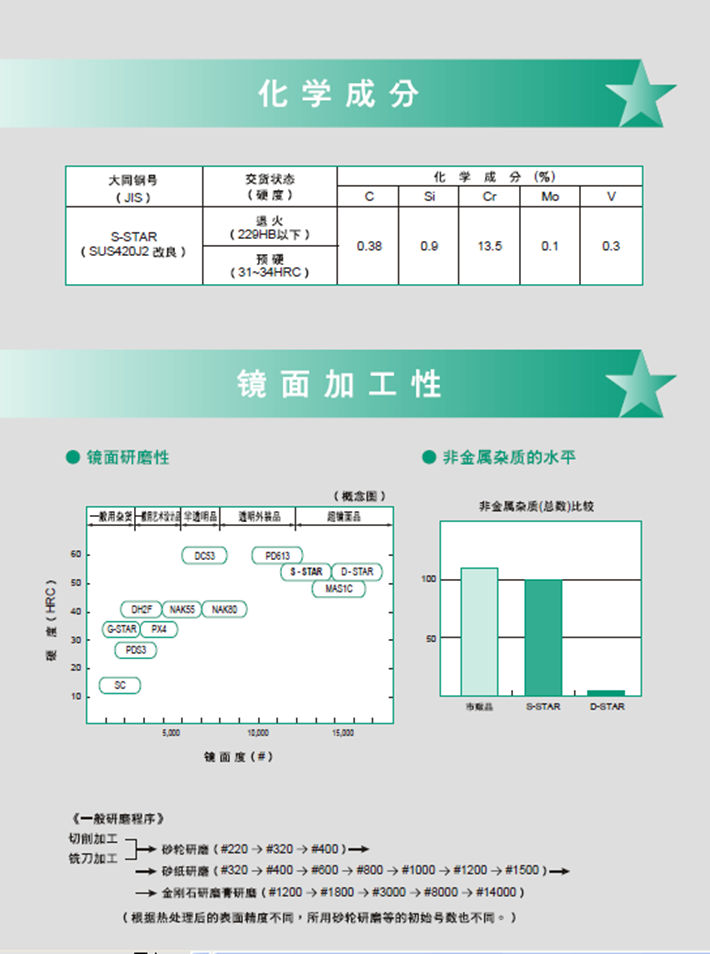 日本大同S-STAR塑料模具鋼:超鏡面性淬火回火模具鋼(二次熔煉材料)